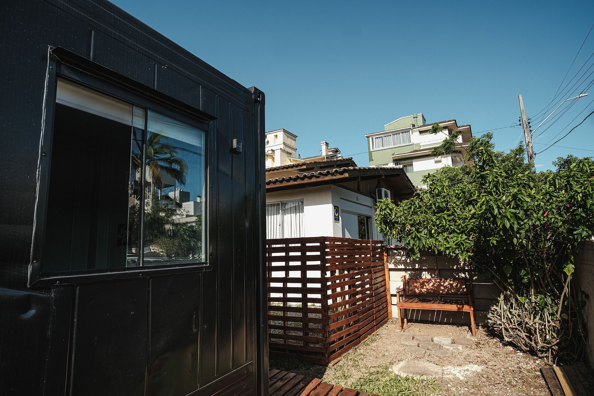 O container faz parte de um terreno com outras acomodações — uma casa e uma kitnet — porém cada unidade é totalmente independente, com entradas separadas e privacidade garantida. Apenas os dois containers compartilham um espaço na frente: um charmoso deck com um banquinho sob a sombra, perfeito para relaxar, tomar um café ou aproveitar a brisa leve de Jurerê.